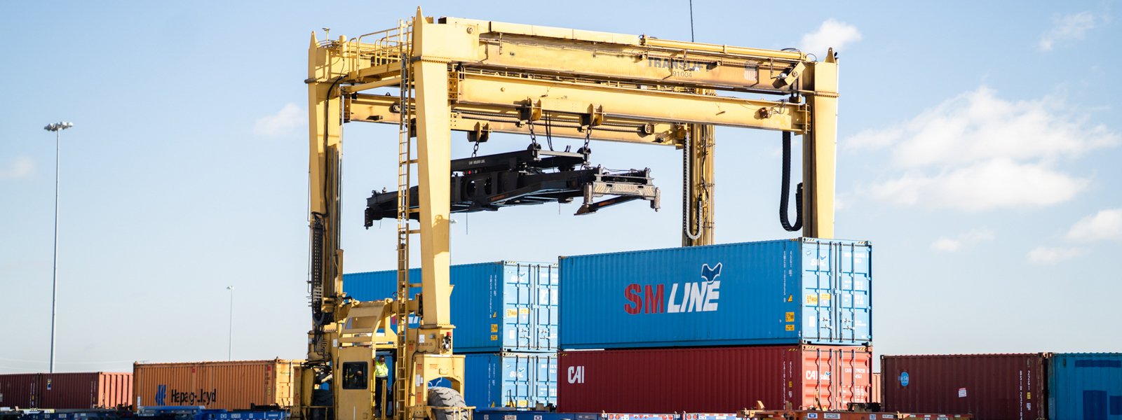 Rubber Tired Gantry (RTG) Cranes are mobile cranes that travel over the rail or stacking area of containers in a railyard. They’re essential to loading and unloading rail cars and trailers to move freight around the country. Rubber tired gantry cranes can span the width of multiple tracks and have the ability to maneuver over other stacked containers.