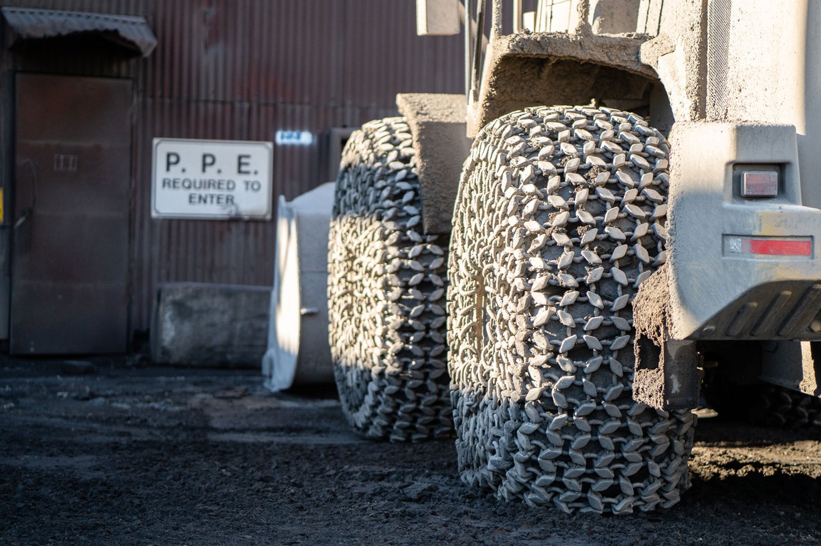 Tire chains are used to safeguard tires subject to heavy abrasion and damage when handling molten slag. Specifically-developed and specially-hardened forged wear links ensure optimal tire protection, even during use on these hot and burning surfaces.